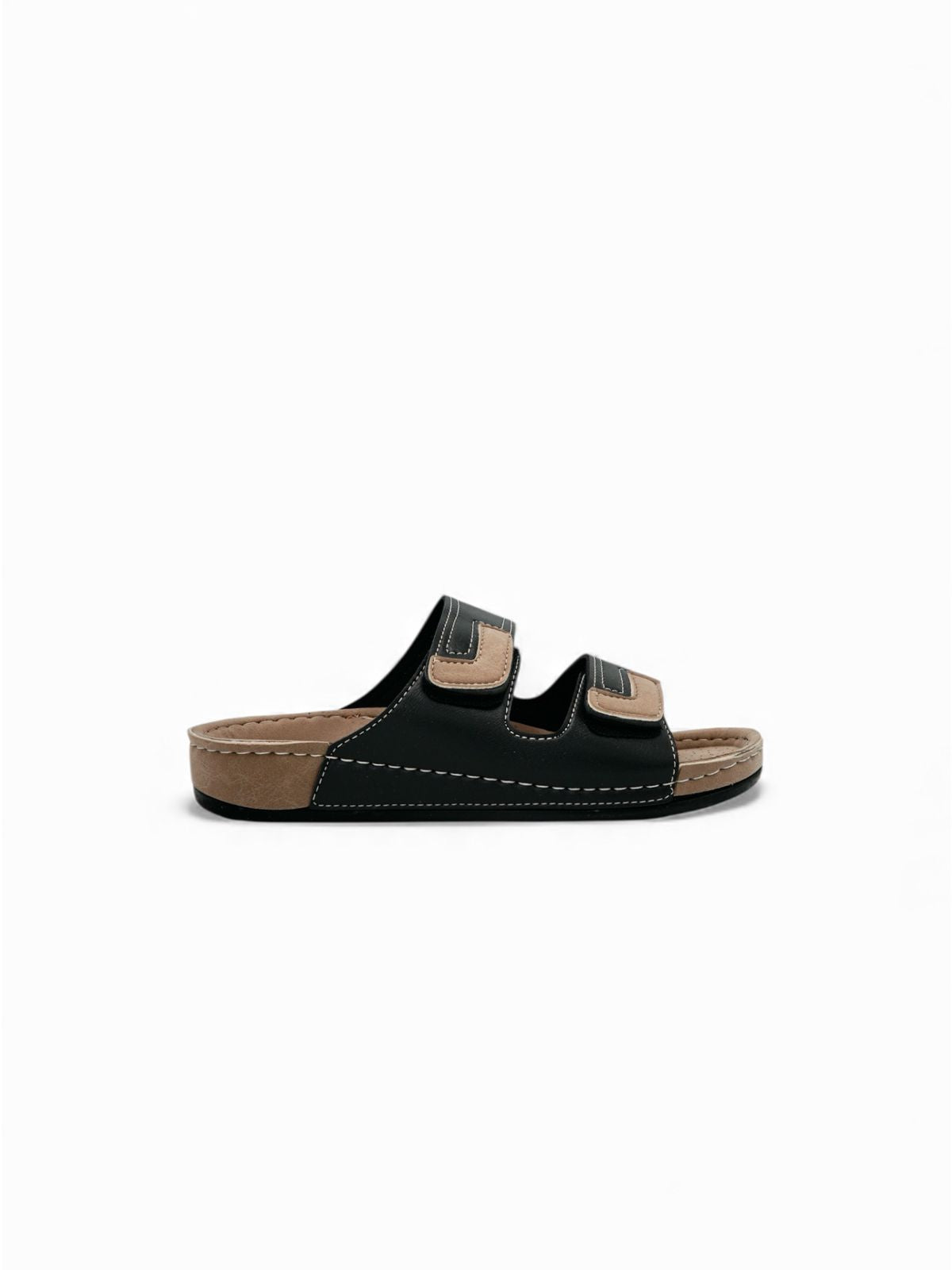 Estas sandalias negras estilo confort están diseñadas para brindar soporte y suavidad en cada paso. Su doble correa ajustable permite un calce firme y adaptable, mientras la plantilla acolchonada ofrece una sensación ligera, ideal para el día a día. Un modelo pensado para quienes buscan comodidad real sin perder un look relajado y práctico.